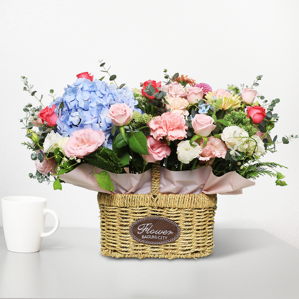 수국혼합 바구니 (총높이 약45cm)